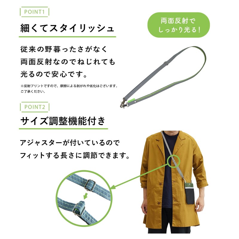 NAPRON REFLECT SACOCHE S REFLECT SACOCHE S Reflective Taski Sacoche Shoulder Bag Size Adjustable Light Label, green
