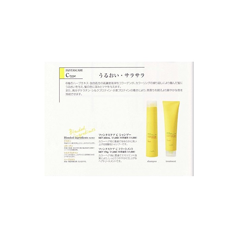 - The Herbal Extract of the seeds to repeat the color of hair moisture, and the thinning hair due to the unique formula of high concentration marine collagen for the color ring depth and shine to any outfit. In addition, molecular keratin・sirukupurotein・ wheat protein works to reduce sun and fade more vibrant color to last a long time. ・fantasukea C features: Color Shampoo Perfect for hair and smooth your 洗i上geru weak acid shampoo. ・fantasukea C treatment Features: Color Perfect for hair and emoriento atori-tomento effect provides your a gloosy finish.