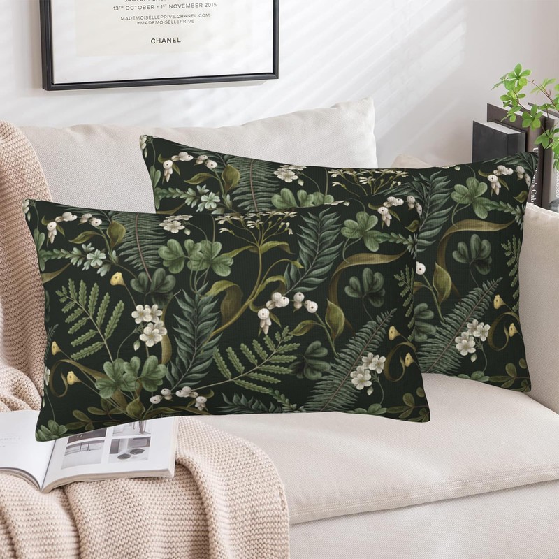 Naqiuli Spring Floral Throw Pillow Covers Set of 2 Green Herbs Botanical Pillow Covers 20x12 Inch Modern Farmhouse Home Decorative Pillow Cases Cushion Cover for Sofa Living Room Office