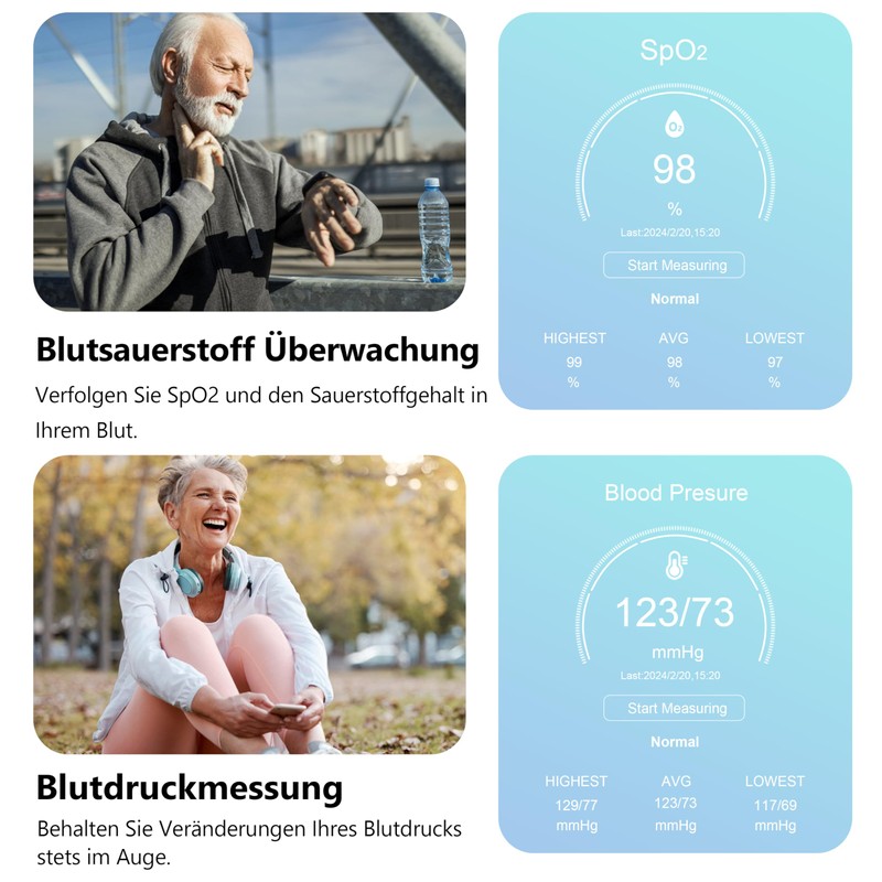 - Health monitoring: The watch is equipped with the latest LC11S sensor technology, which can accurately monitor the heart rate 24/7, measure blood pressure and blood oxygen at any time and automatically monitor sleep records to help you understand your physical condition and health status.