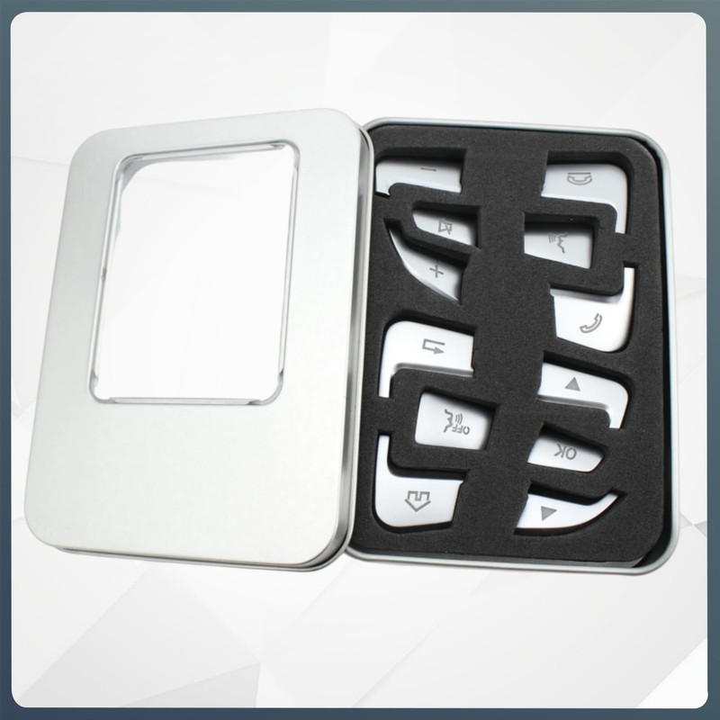 • Package Includes -- 1 set 12 pcs Car Steering Wheel Button Sticker Trims with a sturdy box