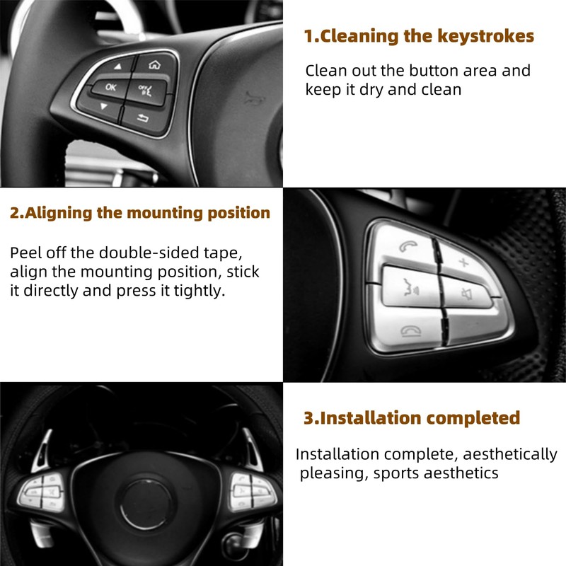 • Excellent material -- The steering wheel button trim strip is made of quality ABS with Chrome, Waterproof, Wear-resistant and Corrosion Resistance, the surface of the sticker is smooth and has a good touch