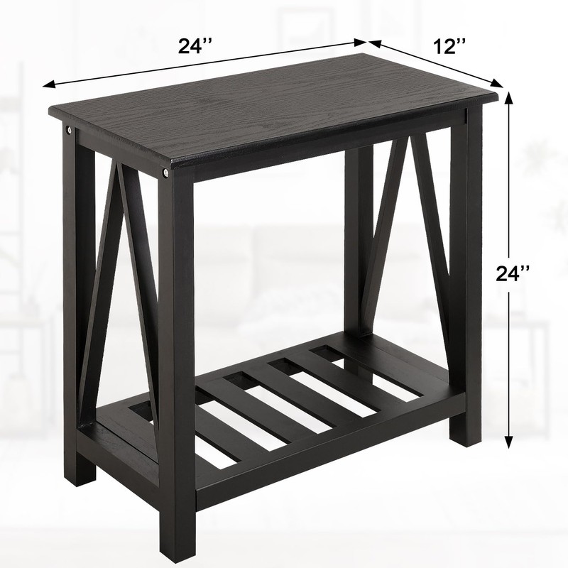 Narrow Side Table with Storage Shelf 2 Tier Wooden Nightstand Bedside Tables ...