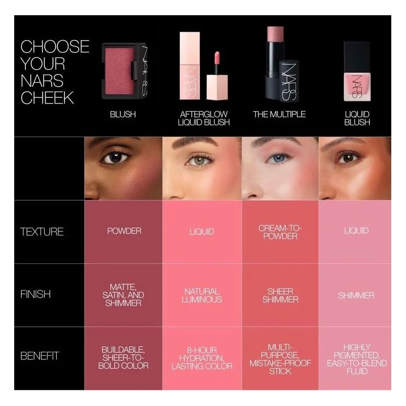 - Buildable formula layers without streaking for cheek color ranging from a natural rush to intensified impact.