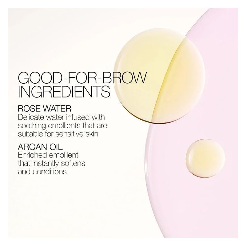 • INGREDIENT HIGHLIGHTS: Enriched with soothing rose water and argan oil, it instantly helps soften and condition brow hairs while delivering smooth definition