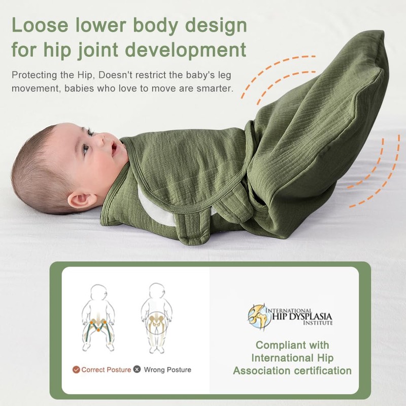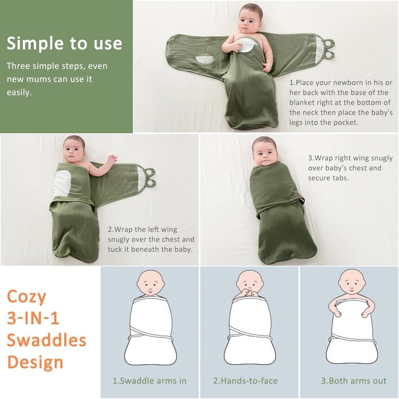 - Cozy 3-in-1 Swaddles Design: The 3-way adjustable swaddle that adjusts to your baby's sleep style. With a pocket for the legs, two wings that wrap around the arms and front fastening, even the wriggliest of babies can be swaddled without fuss. Swaddle arms in, hands-to-face, one or both arms out to ensure baby's best sleep and an easy. Preventing the startle reflex and accidentally scratching their face, swaddling keeps the baby safe, snug and well rested.