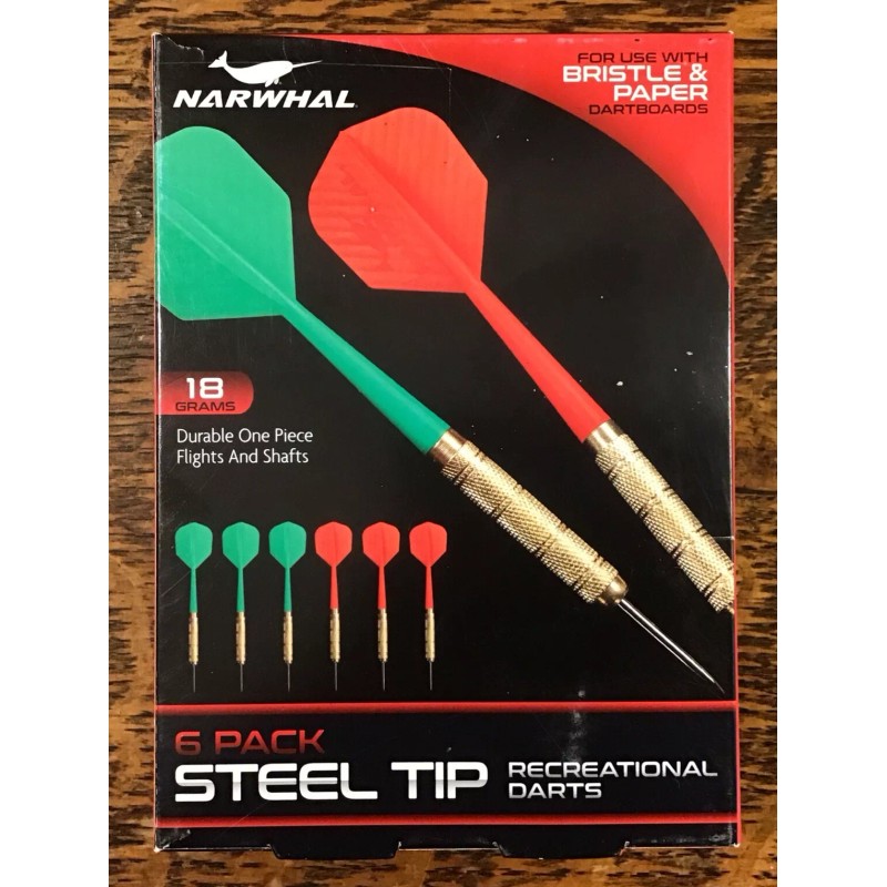 Narwhal Recreational Dart Board Darts Steel Tip 18g 6 Pack 3 Red, 3 Green Brand