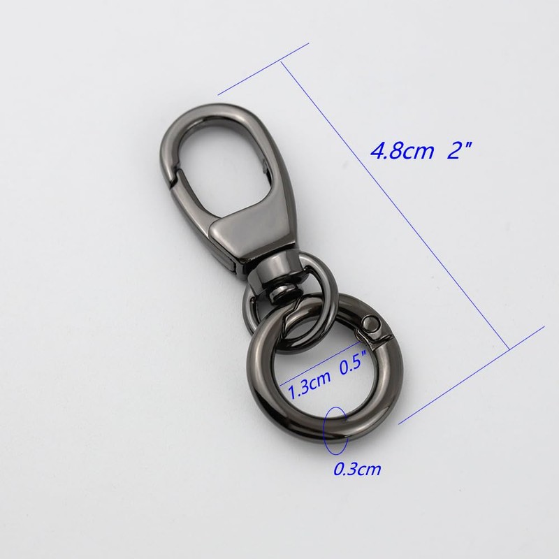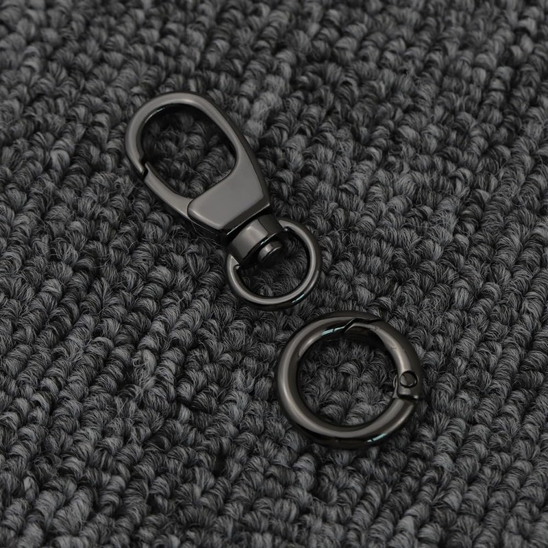 Nascan Double Ring Keychain, Rotating Hook, Snap Hook, Handicraft Supplies, Handmade Hardware, Lever Nascan, One-touch Key Holder, Parts, DIY Accessories, Nascan (4.8cm, Black)