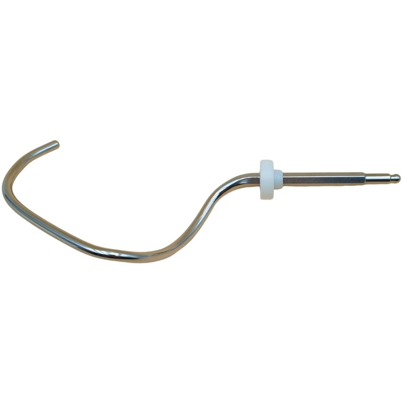 Material & Features: Stainless steel with smooth surface for easy cleaning, robust round rod for high rigidity, S-shape for efficient dough guidance. White spacer ring for guiding in the bowl. Hex shank with ball detent for tool-free change. Designed for even gluten development in yeast doughs; compatible with Bosch food processor