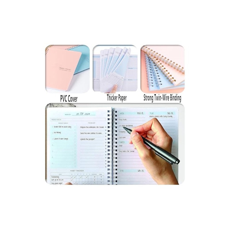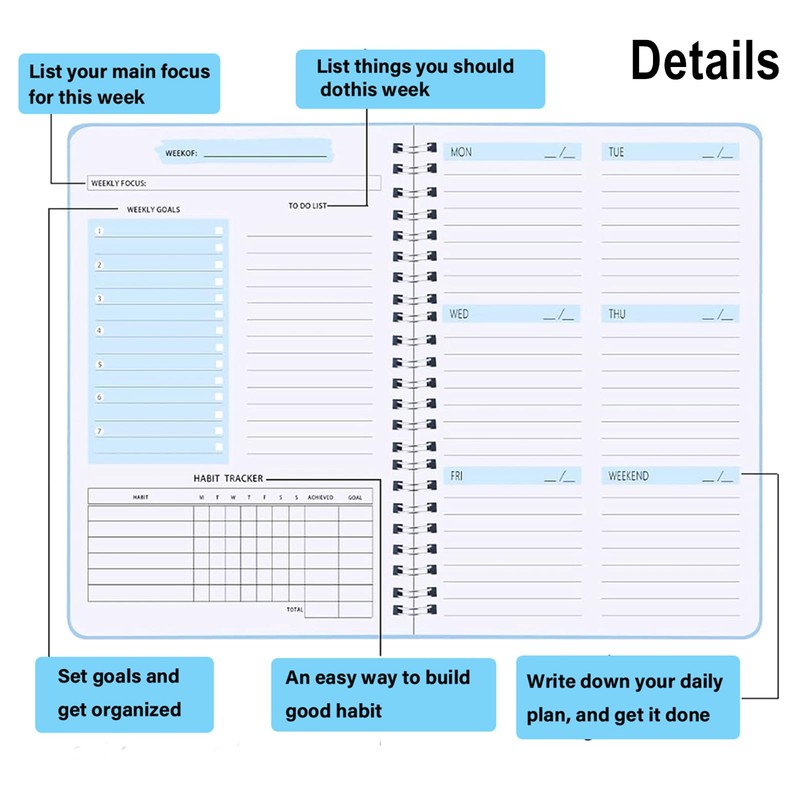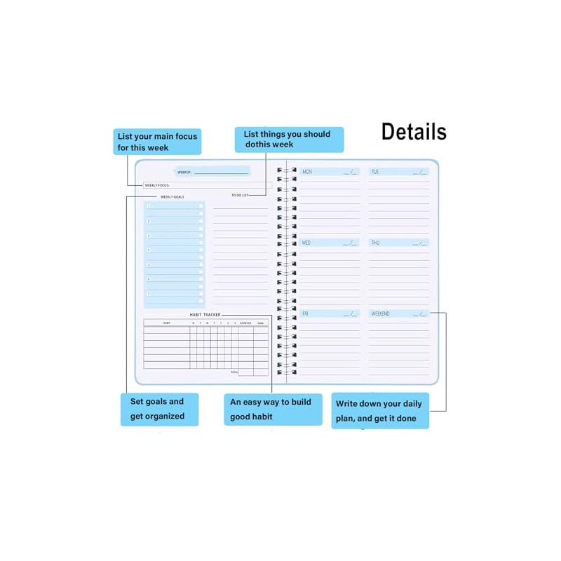 - Undated Weekly Planner: This weekly planner diary is not dated, which can help you develop a 52 week plan, making it ideal for daily life plans, study plans, work plans, and teacher plans.