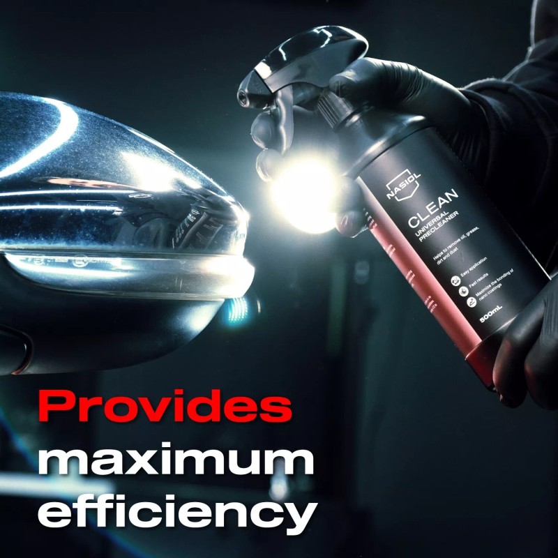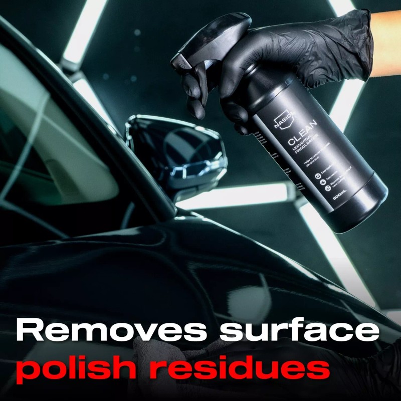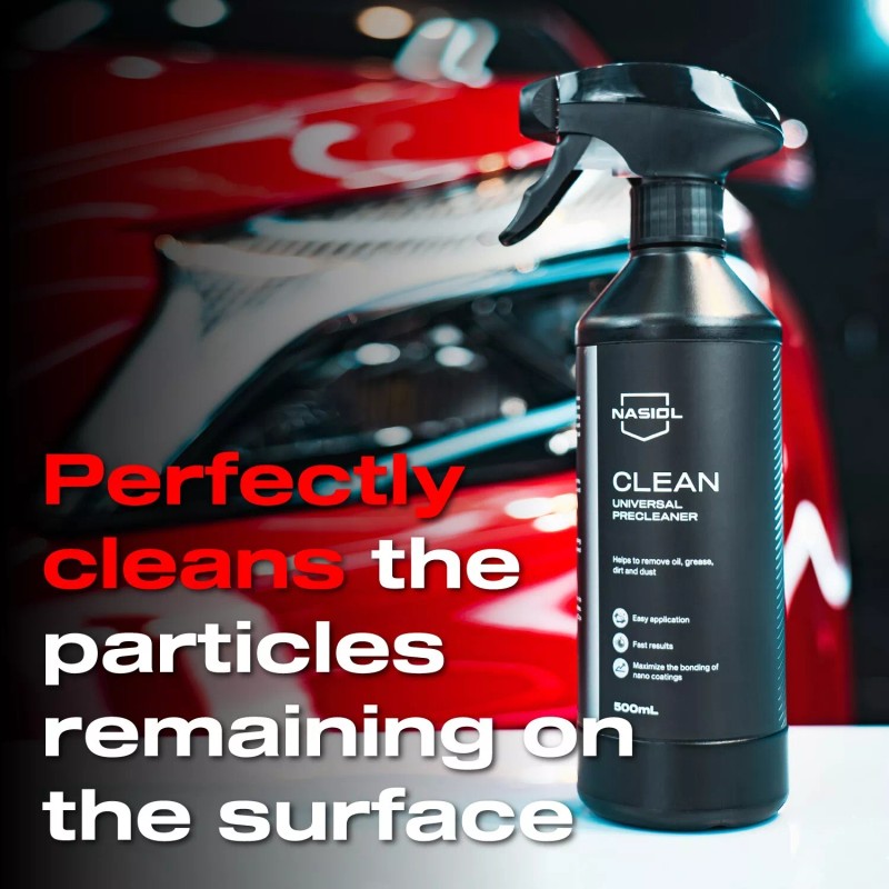 Nasiol Clean Universal Precleaner is a product that can be used on any hard surface, easily removing dust, dirt and other contaminants. This product is very easy to use, and all you have to do is spray it onto a cool surface and wipe down the solution with a new microfiber cloth. Nasiol Clean increases a surface's ability to bond with certain films and nano coating products, making them more effective and longer-lasting, making this an ideal product for both end-users and detailers.