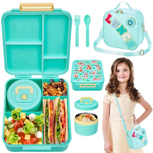 Nasjac Lonchera Bento Box para Niños Y Adulto, Caja Charolas Bento 2000ML de 4 Divisiones con Termo de Sopa, Bolsa de Almuerzo Termica para Niños Portátil con Cuchara Tenedor y Bolsa Aislante, Sin BPA
