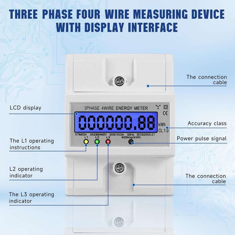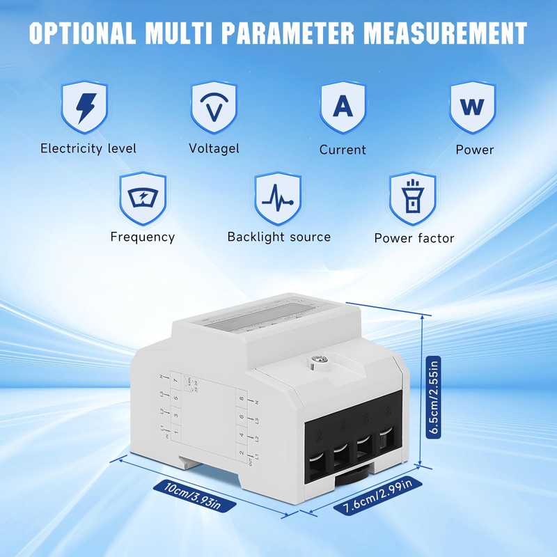 - Energy monitoring made easy: our 3-phase electric meter DIN rail calibrated and three-phase meter calibrated allows easy monitoring of your energy consumption; with the load display, you can control the power consumption in real time and operate more efficiently