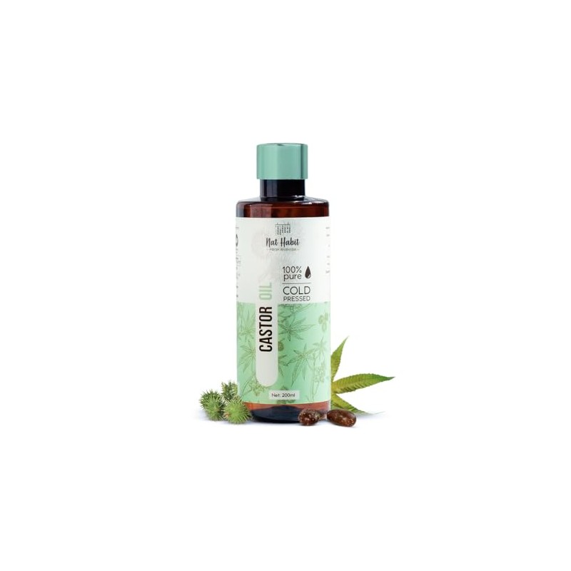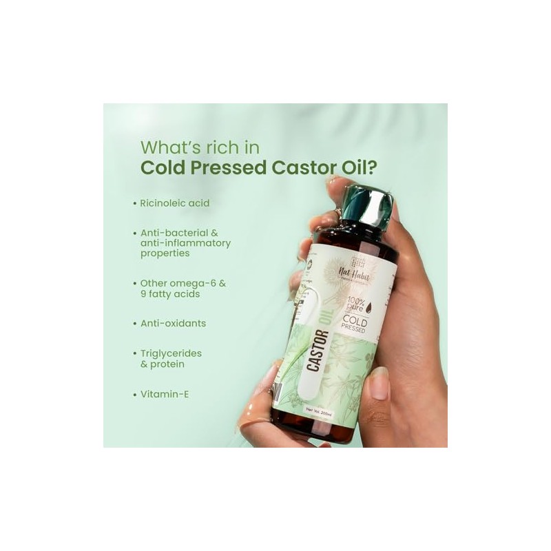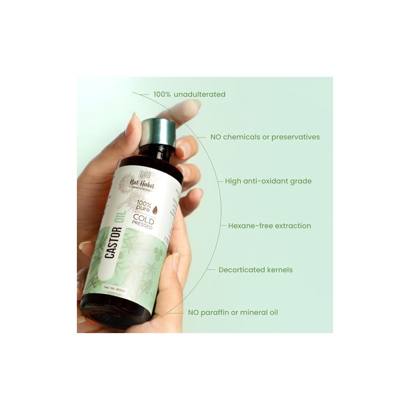 Nat Habit Cold Pressed 100% Pure Castor (Arandi) Oil for Skin & Hair With Vitamin E, Omega-6 & 9, Mineral Free & Preservative Free (200 ml)