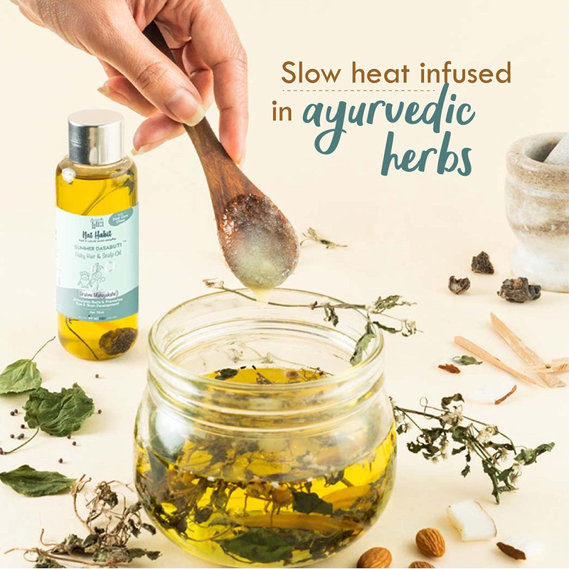 Nat Habit Summer Baby Scalp & Hair Oil with Brahmi Matsyakshi Dasabuti, Cools Body & Aids Good Sleep - 110ml