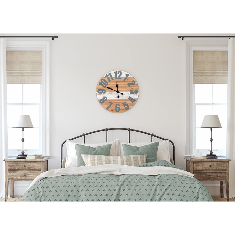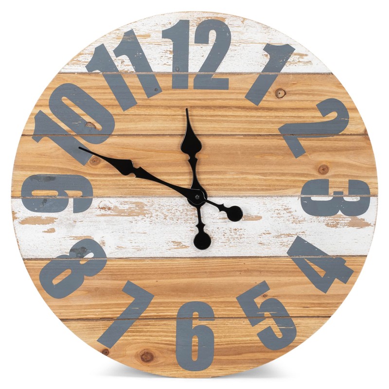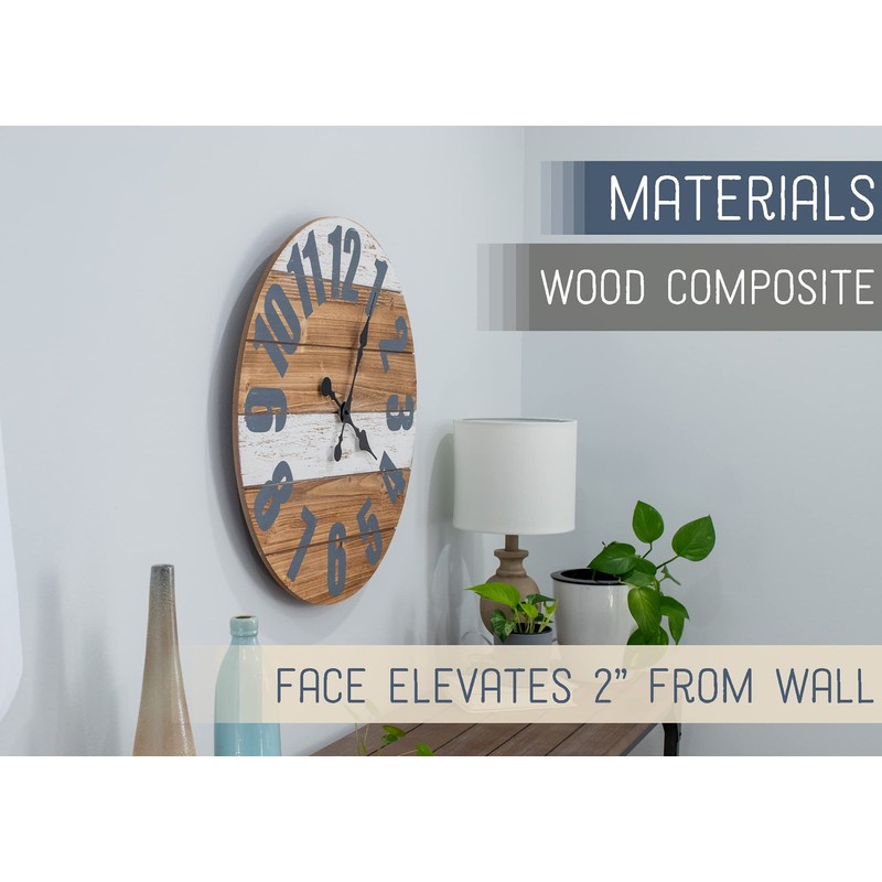 NAT & Jules Striped Woodgrain and White 24 inch Wood Composite Large Wall Clock
