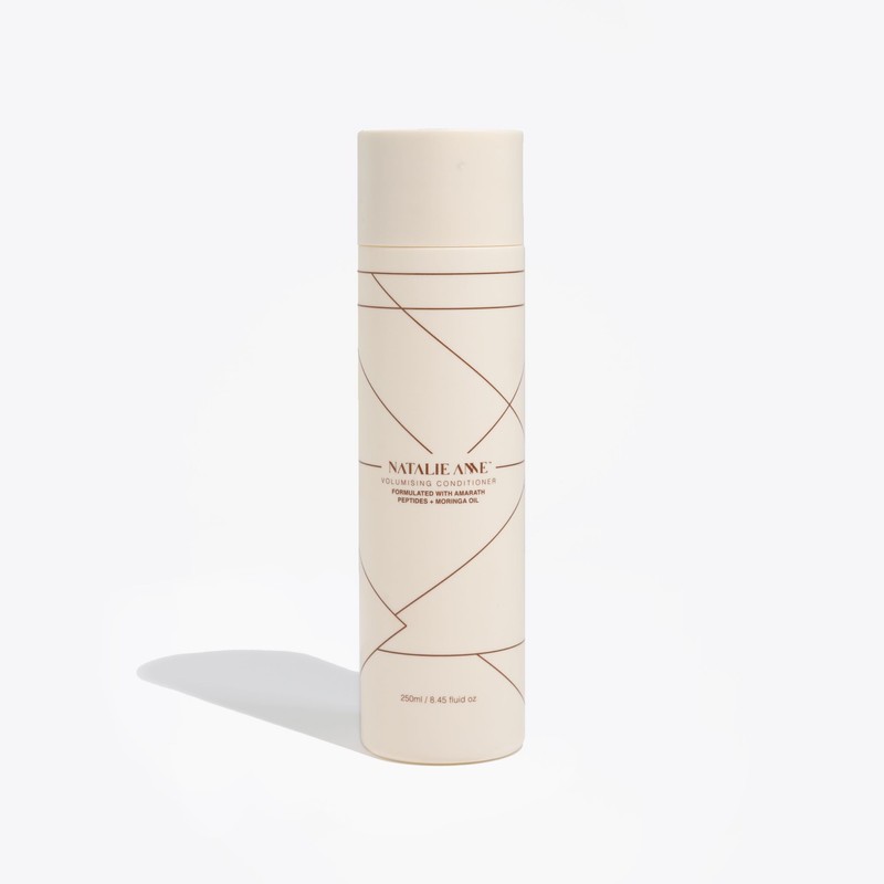The Natalie Anne Volumising Conditioner 250ml is a haircare product formulated with amaranth peptides and moringa oil to provide nourishment and hydration for fuller and healthier hair.