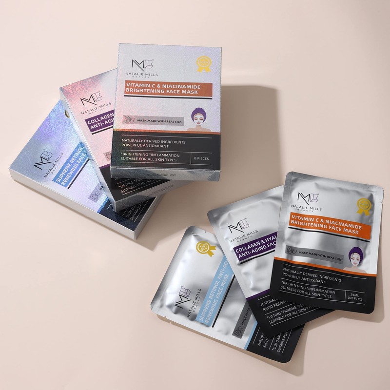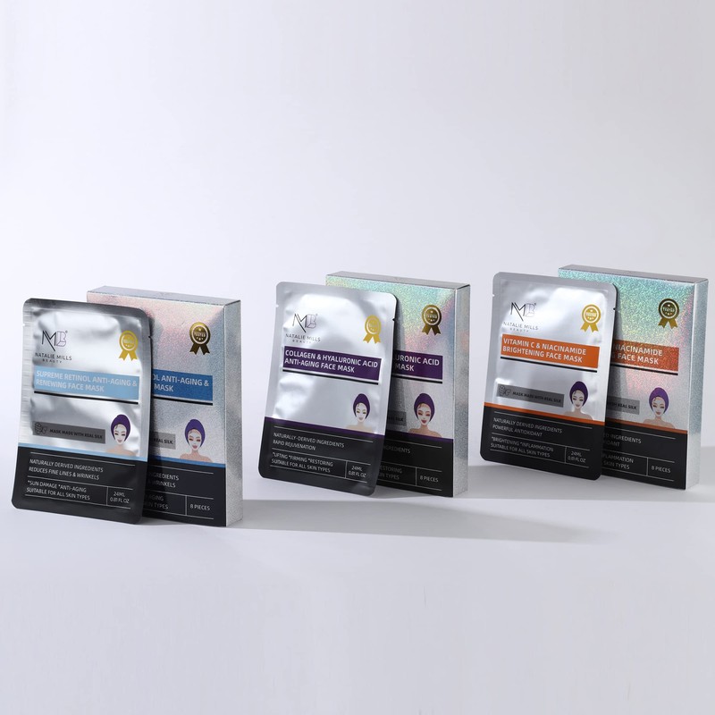 Natalie Mills Vitamin C & Niacinamide Brightening Anti-Aging SILK Face Mask - 4pcs