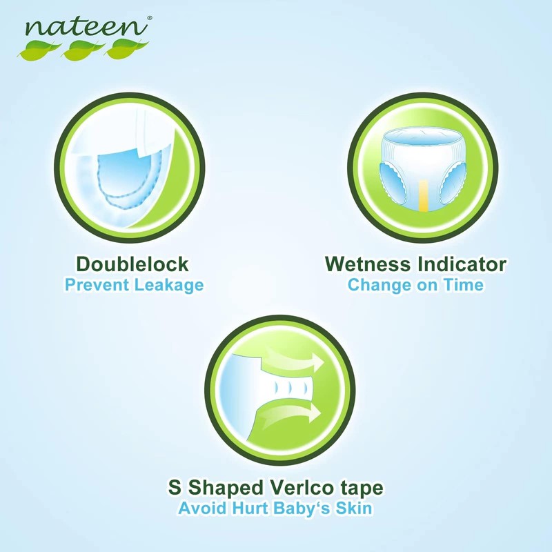 Nateen Premium Baby Diapers, Overnight Use Disposable Diapers for Sensitive Skin, Ultra Thin Diapers with Comfortable Fit. (Size 3 (Medium), 144, Count), White