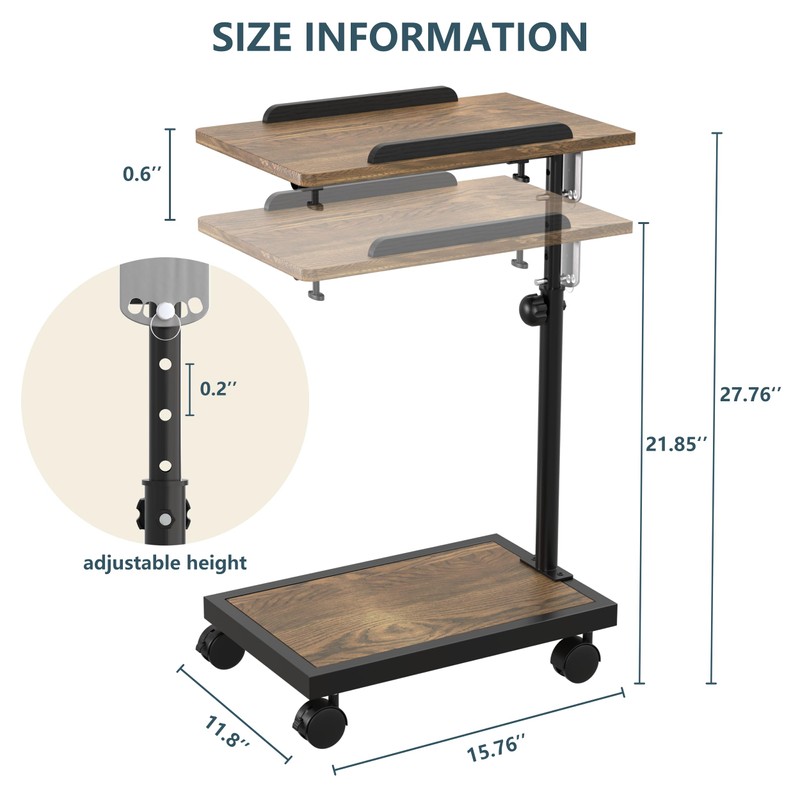 - Convenient versatility: It can be used as a sofa side table or bedside table, placed in the living room, bedroom, or office. Its lightweight design and built-in wheels allow it to be easily moved to different locations.