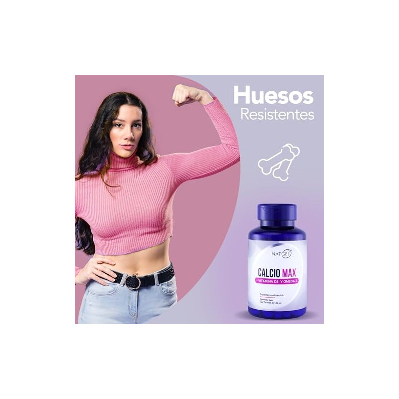 🌟 ⭐ NatGel Calcio con Vitamina D3 y Omega 3 | Suplemento para Huesos Fuertes y Salud General | Pureza y Calidad Garantizada | 120 tabletas de 1,800 mg ⭐ 🌟