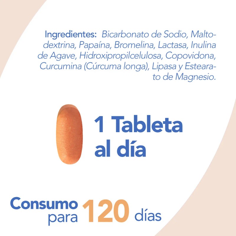 💊 120 tabletas fáciles de tomar: ideales antes o durante comidas pesadas