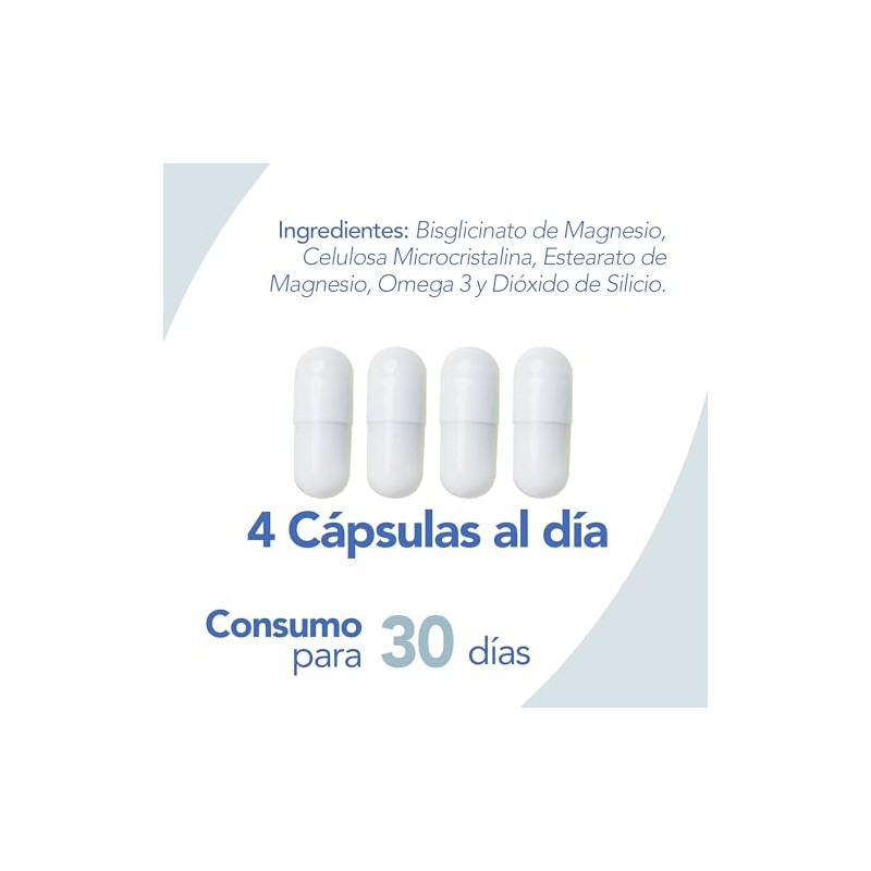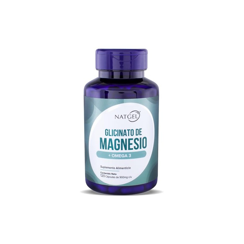 NatGel Glicinato de Magnesio con Omega 3 Alta Absorcion y Maxima Pureza Apoyo para el Sueo, Relajacion y Salud Osea 120 Capsulas VCaps de 900 mg