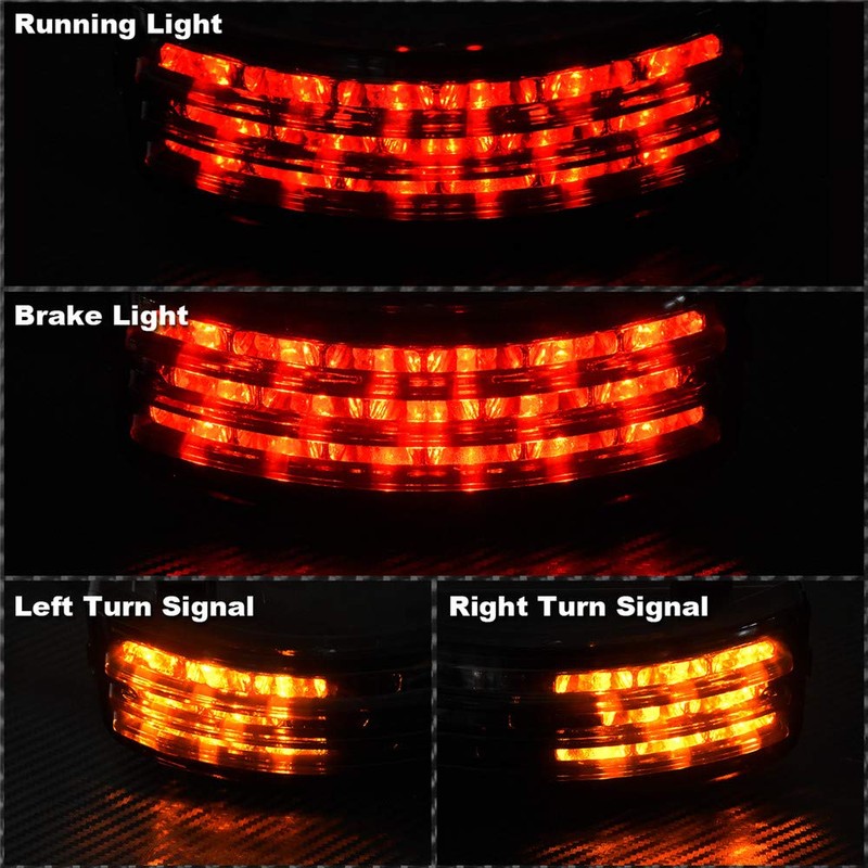 - ❤【Multifunctional Tail Light】: All in one function - includes tail light, turn signal, running light, brake light. It features two light colors (red light + yellow light) in a whole L-E-D light board.