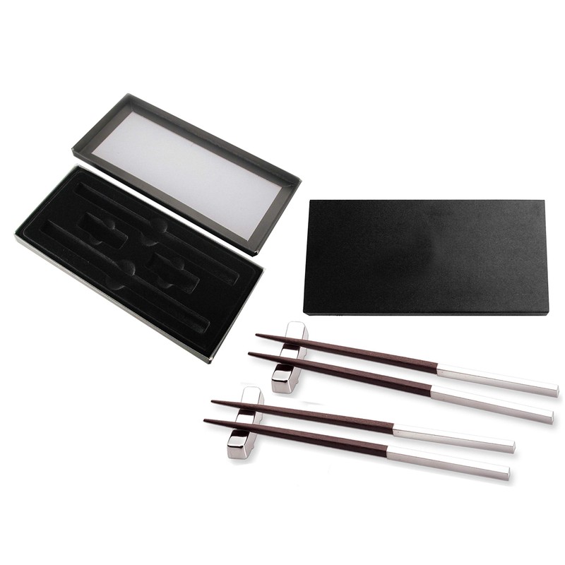 Natico Silver and Wood Chopsticks | Set of 2 Pairs w/Rests Included (60-603SET)