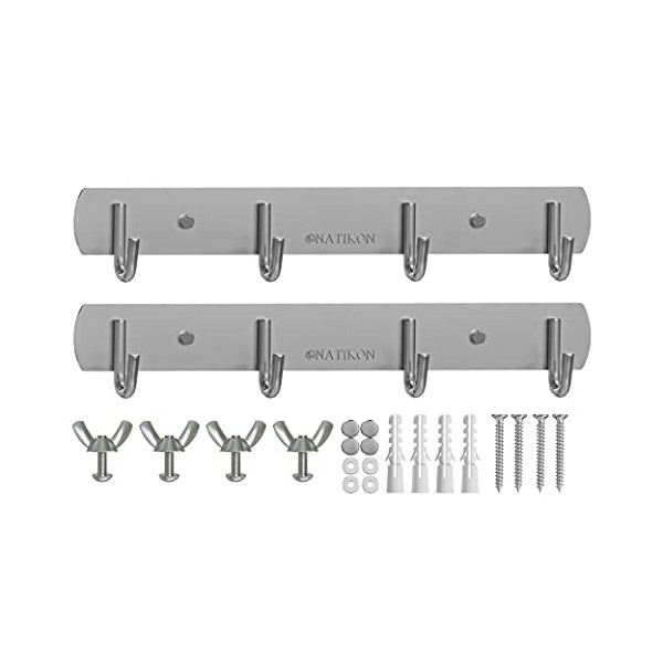 NATIKON Heavy Duty Stainless Steel Rack Hanger Hook for BBQ Grill Utensils and Grill Accessories - Easy to Install for Indoor or Outdoor Use - 2 Pcs