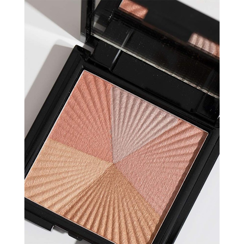 - Bronzer and highlighter for a multi-dimensional wash of warm radiance