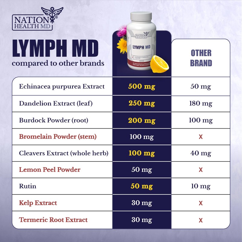 - Quality & Safety: NationHealth MD is committed to providing deluxe supplements. Lymph MD is manufactured in the USA, using foreign and US ingredients. The product undergoes rigorous testing to ensure purity and potency, giving you peace of mind with every capsule you take.
