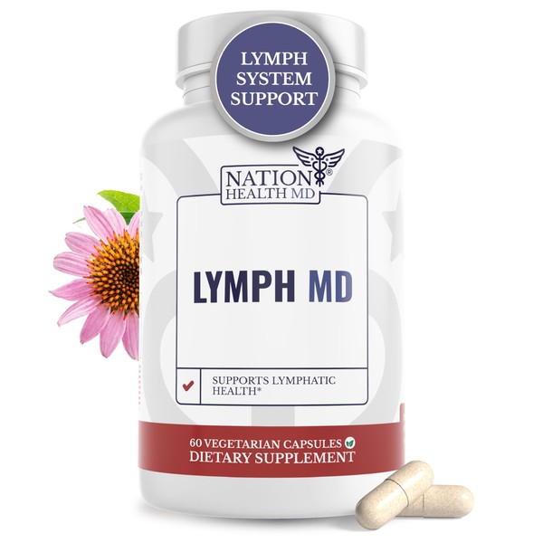 Nation Health MD Lymph MD - Lymphatic System Supplement with 9 Botanicals - Dandelion, Burdock, Echinacea, Lemon & More - Supplements for Men and Women - 60 Capsules