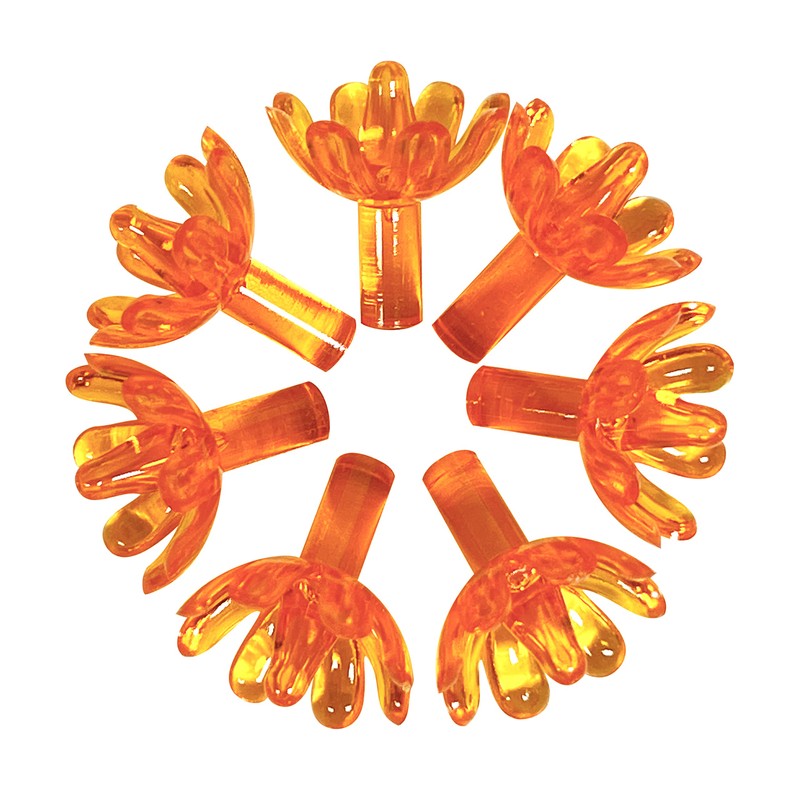National Artcraft's super-cute, colorful, plastic, flower tree lites are a unique addition to your ceramic Christmas tree. This pack contains ORANGE flowers only. The flowers measure 3/4" long x 3/4" wide. The stem is 7/16" long x 3/16" in diameter.