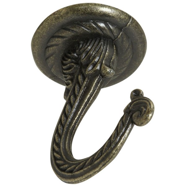 2 hooks per package. Designed to hook into ceilings. Decorative home hardware that adds a finishing touch to any room. Die cast material. 1 Hook Per Package. Designed To Hook Into Ceilings. Decorative Home Hardware That Adds A Finishing Touch To Any Room. For large plants, decorative items, and swag lamps. 1 hook, 1 toggle bolt, and 1 screw per card.