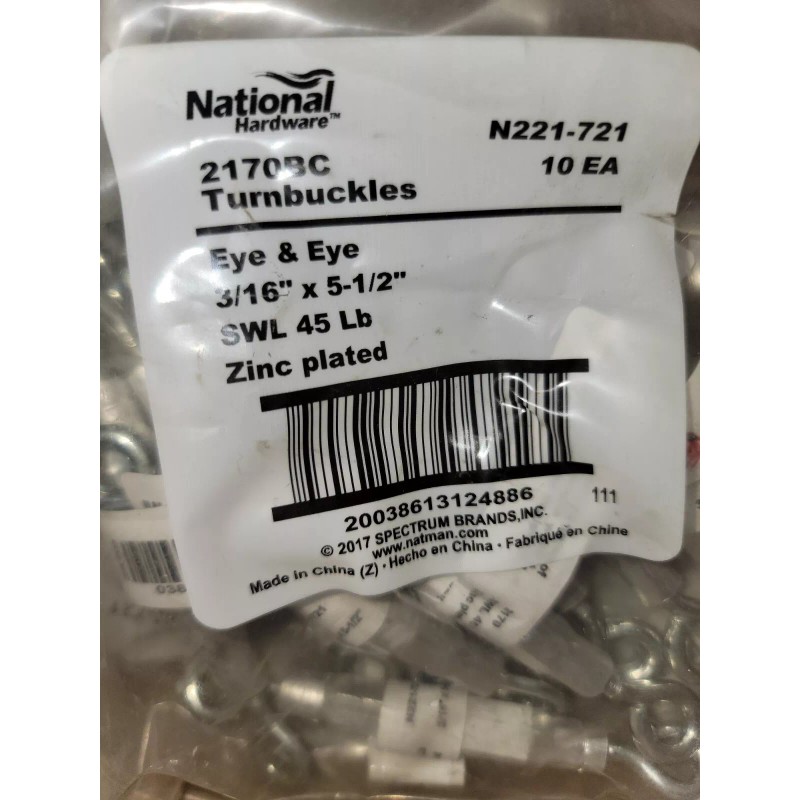 National Hardware National Hardware Zinc-Plated Eye & Eye Turnbuckle 3/16 x 5-1/2 in. 10 Pack