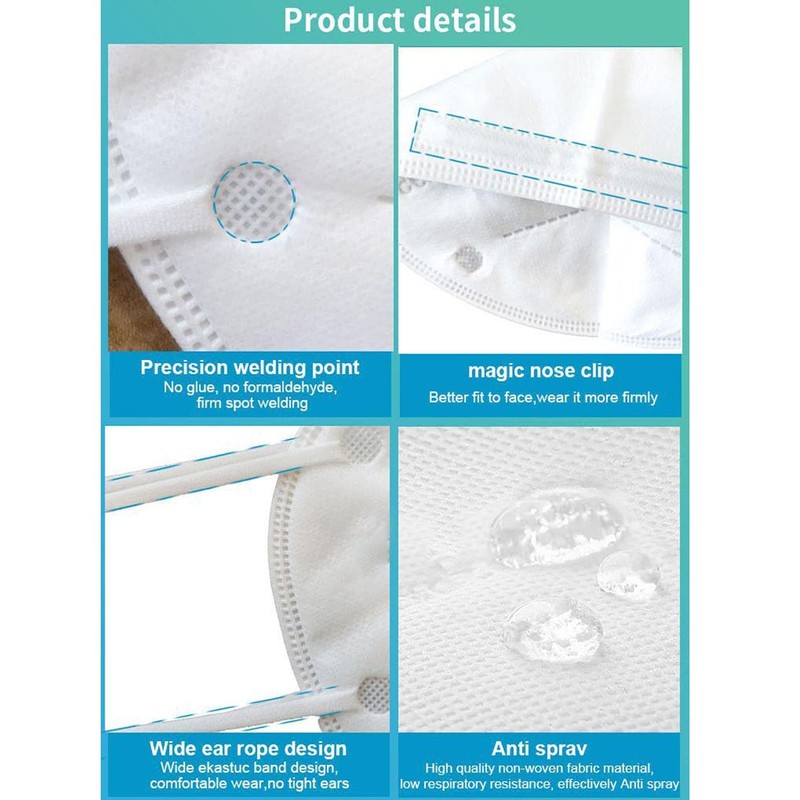 • FEATURES: 5 layers, elastic ear loops, soft comfortable, perfect fitting, hypoallergenic, adaptable nose bar, high filtration rate, low resistance to breathing, skin friendly