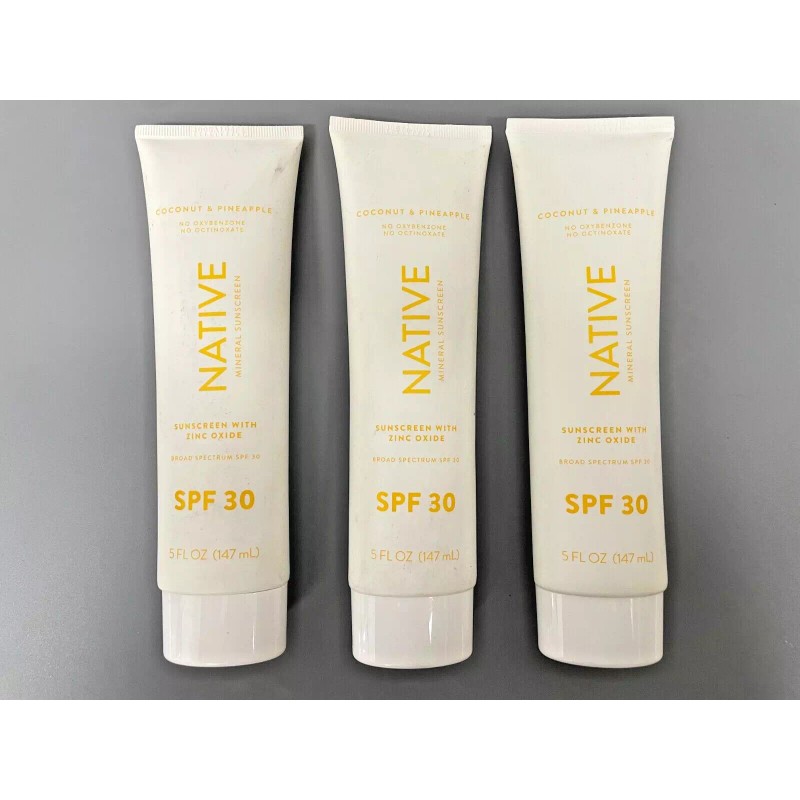 Native 3 PACK Native Mineral Sunscreen SPF 30 COCONUT & PINEAPPLE 5oz Large Size 02/25