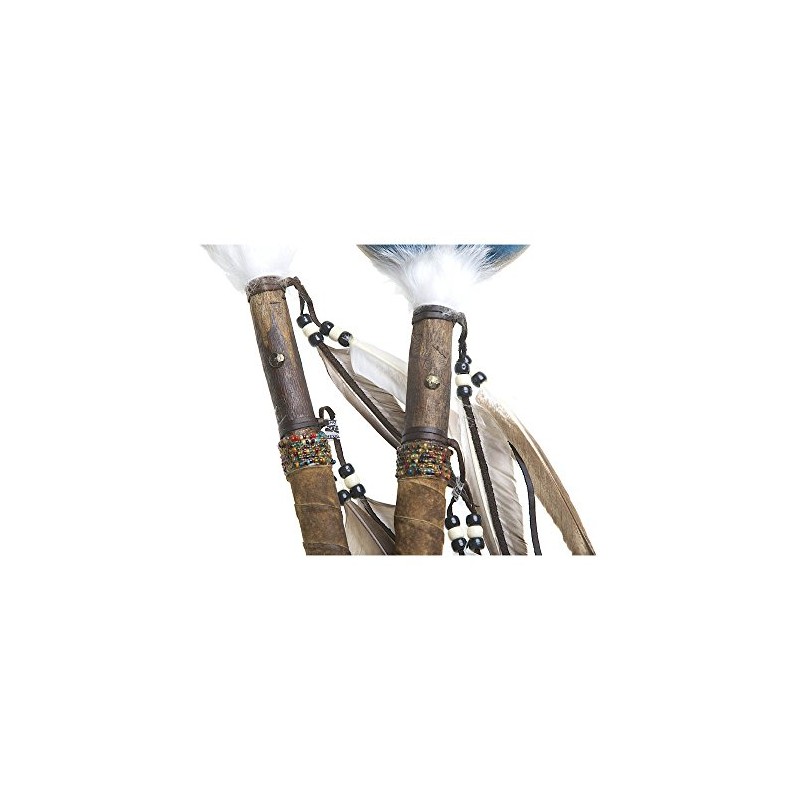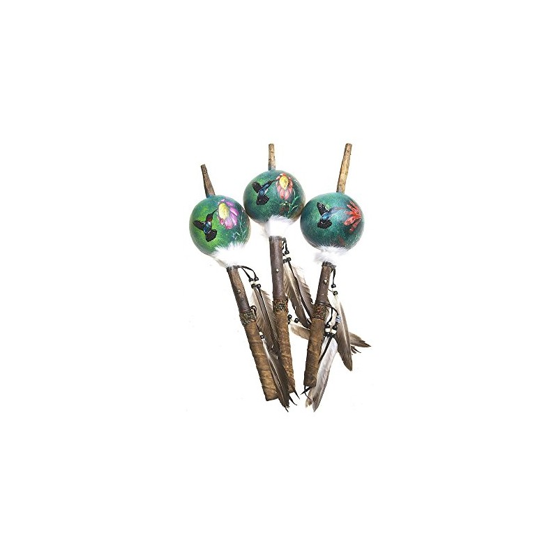 • Material: Gourd head with wooden handle, suede, feathers & colourful beads