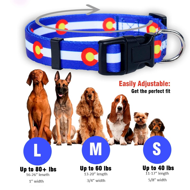 - VIBRANT COLORS: Colorado dog collars feature the gorgeous red, blue, yellow and white that match the beauty of that state. California dog collars have a detailed repeating image of the well-known bear with “California Republic” stated underneath. Texas dog collars feature the prominent Lone Star with the perfectly patriotic red, white and blue colors.