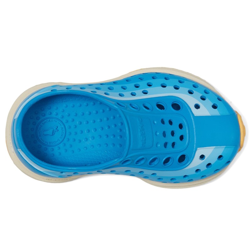 Native Shoes Kids Robbie Print (Toddler) - Shoes for Kids - Slip-on Construction - Round Toe Design Wave Blue/Bone White/Pineapple Speckle Rubber/Wave Foggy Fade 5 Toddler M