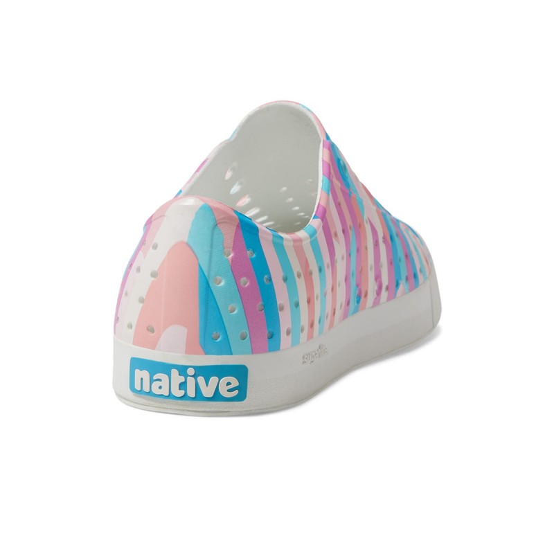 Native Shoes Unisex Jefferson Sugarlite Print Shell White/Shell White/Pastel Multi Stripe 2 Men's 10, Women's 12 Medium