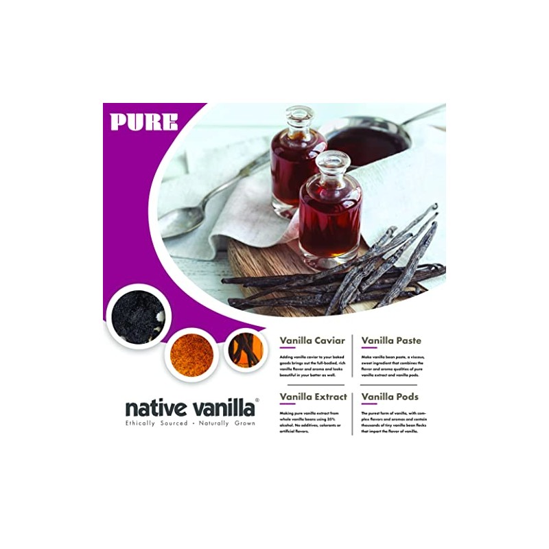 - ETHICALLY SOURCED – Native Vanilla assists hundreds of micro farmers in Papua New Guinea with fair trade assistance, and maintains a commitment to growing practices that are environmentally friendly.