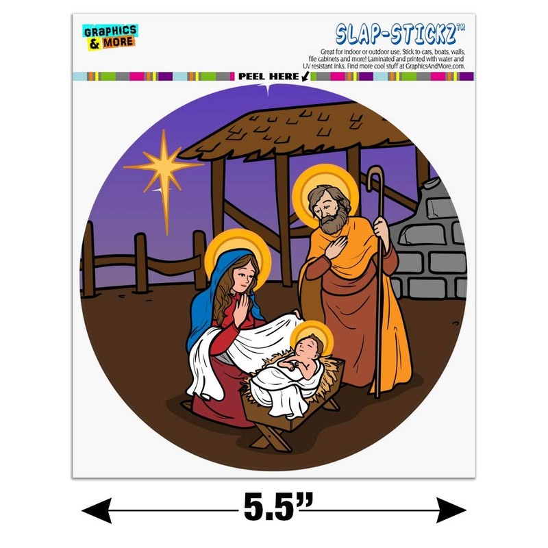 Nativity Scene Baby Jesus Mary Joseph Christmas Christian Bible Automotive Car Window Locker Circle Bumper Sticker