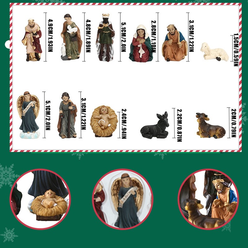 1、Hand-Painted: It's not just a commodity, it's a work of art. This nativity sets are made of high quality hand-painted cast resin, which makes it more valuable for collection. 2、Christmas Nativity Scene: This mini nativity figurine set features a Baby Jesus, Saint Joseph, the Virgin Mary, a cute sheep, donkey, cow, the three wise men, and a shepherd. 3、The Perfect Size: Each nativity figurine comes in various sizes from 0.78 to 1.96 inch. 4、Religious Christmas Decorations: The mini nativity scene is perfect to display in your home,, office, or as a decoration year-round; makes a great sentimental gift for friends and family. 5、Beautiful Gift: Adorable and heartwarming gift for your family and friends to celebrate Christmas.