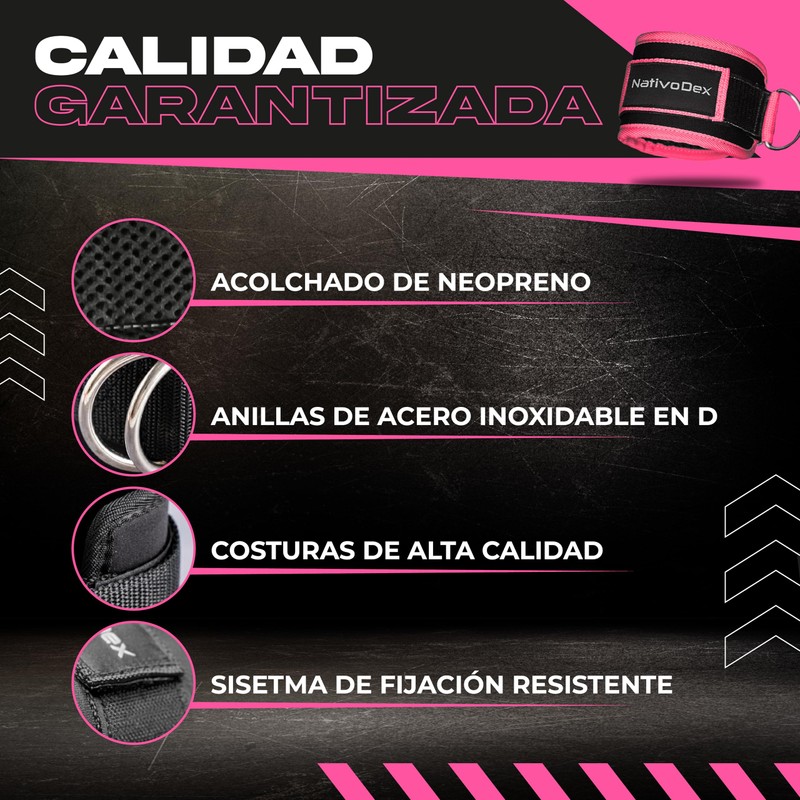 NativoDex Ankle Strap Pulleys Gym (Pack of 2) - Ankle Brace for Padded Pulley - Specific Use for Ankle and Shoulder / Deltoides (Pink)