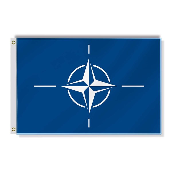 NATO Small Flag,12×18 Inch Two Layer Fabric Small Banner,1×1.5 FT North Atlantic Treaty Organization Nautical Decor,Mini Digital Printed 150D Polyester Banner With Brass Grommet
