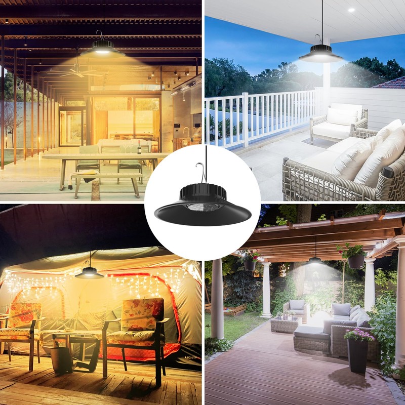 - Remote control with 5 functions: Take full control of your solar pendant lights with the included remote control. Enjoy functions such as on/off, automatic twilight to dawn lighting or daylight mode, adjustable colour temperature (3000K/4000K/6000K), brightness adjustment (50%-100%) and convenient time control for 3 hours/5 hours/8 hours.
