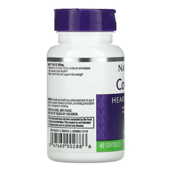 Natrol, CoQ-10 Cpsulas blandas, Suplemento diettico para la salud del corazn, 100 mg, 45 unidades, Ayuda a Combatir los radicales libres y a...