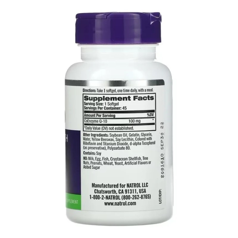 Unidad - Natrol, CoQ-10 Cápsulas blandas, Suplemento dietético para la salud del corazón, 100 mg, 45 unidades, Ayuda a Combatir los radicales libres y a preservar el antioxidante vitamina E. 💯 Autenticidad y máxima durabilidad comprobadas. Materiales de alta gama y acabados premium. 💎 Calidad superior certificada. Ideal para quienes buscan lo mejor en calidad y estilo. Producto auténtico con satisfacción total asegurada. ¡No te quedes sin el tuyo y aprovecha esta oportunidad única!